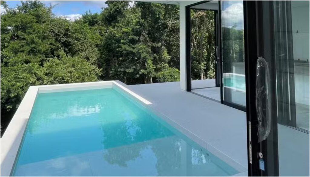 Equipada com piscina, com vista para a Pedra da Gávea, jacuzzi e lounges de descanso, a propriedade de Aline impressiona pelo tamanho. Em 2025, a participante do BBB26 compartilhou o tour pela reforma do quarto do filho, Nathan, que mora com ela, junto com 17 gatos e dois cachorros.