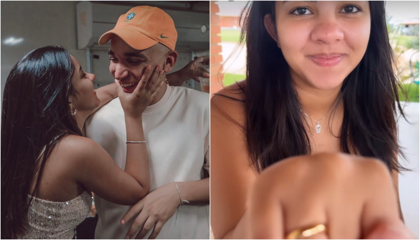Ao gravar a influenciadora em seu perfil da rede social, o cantor focou a câmera na mão dela com a aliança, confessando: “Nem mostrei pra galera, fui dormir ontem cedo”.