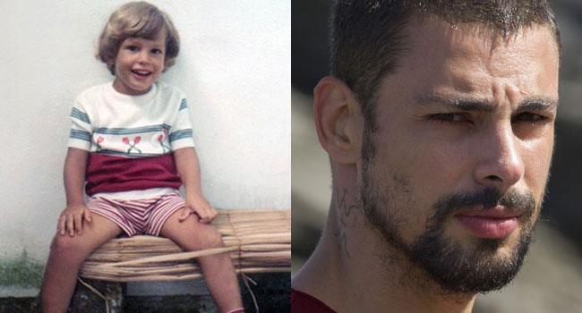 O jogador de futebol foi outro famoso que mudou bastante depois de grande e pouco se parece com o garotinho sorridente da foto.