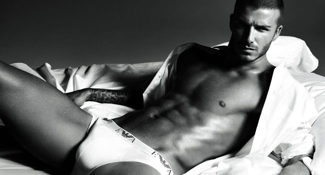 O jogador é um dos recordistas em poses de cueca. Ele até já fez fotos de roupas íntimas ao lado da mulher, Victoria Beckham.