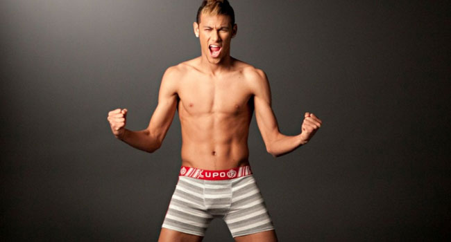 O jogador fatura alto para divulgar uma marca de roupas íntimas masculinas.