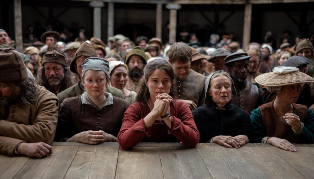 Baseado no romance homônimo de Maggie O’Farrell, o filme transporta o público para os anos formativos de William Shakespeare (Paul Mescal), muito antes de sua consagração nos palcos de Londres. O foco central é o impacto devastador da peste bubônica, que assolou a Europa entre os séculos XIV e XVI, atingindo o coração da família do escritor com a morte prematura de seu filho, Hamnet.