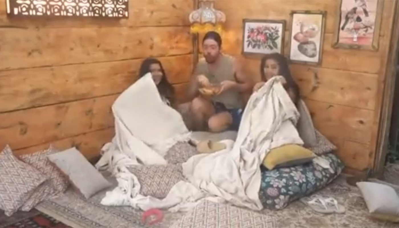 Foi possível ouvir a maior gritaria. A única que teve coragem de voltar correndo para a sede, mesmo no meio da tempestade, foi Aline Mineiro, enquanto o restante colocou até cobertor na cara para se proteger.