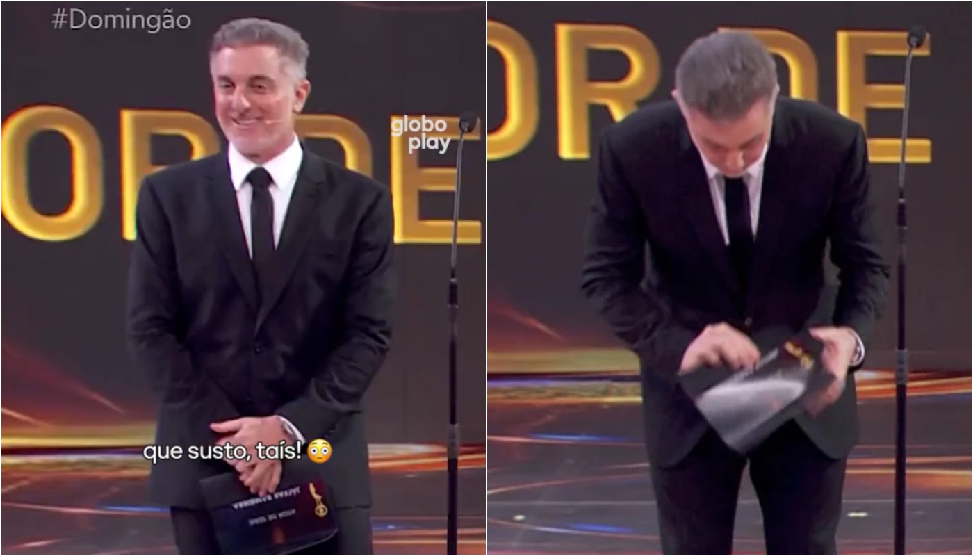 “Sabe o que aconteceu? Agora eu abaixei o [envelope com] o prêmio e a Taís, que está bem aqui na frente, fez psiu. Eu achei que era a minha braguilha que estava aberta, mas era o [nome do vencedor que estava à mostra”, entregou Huck, eventualmente.